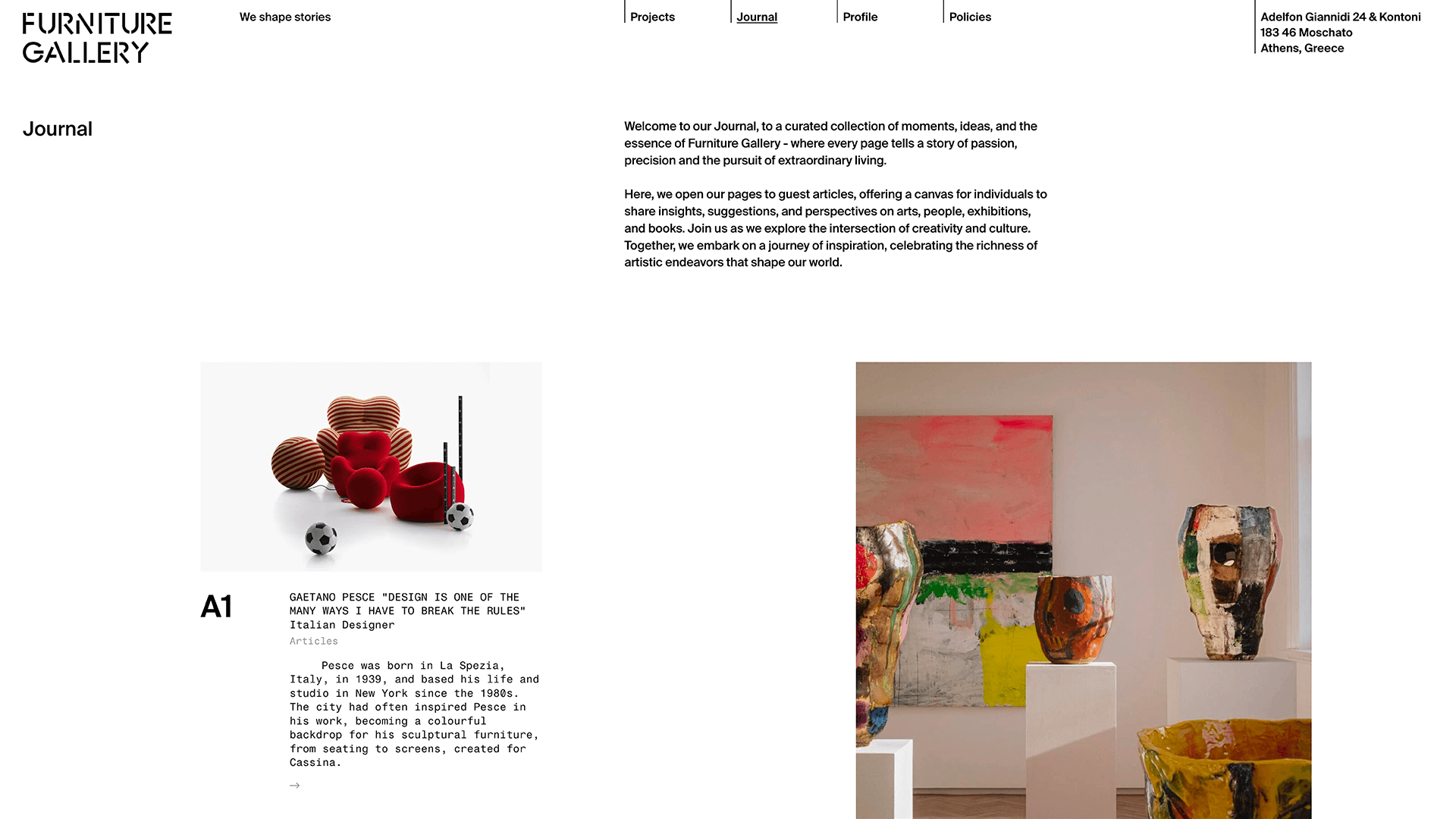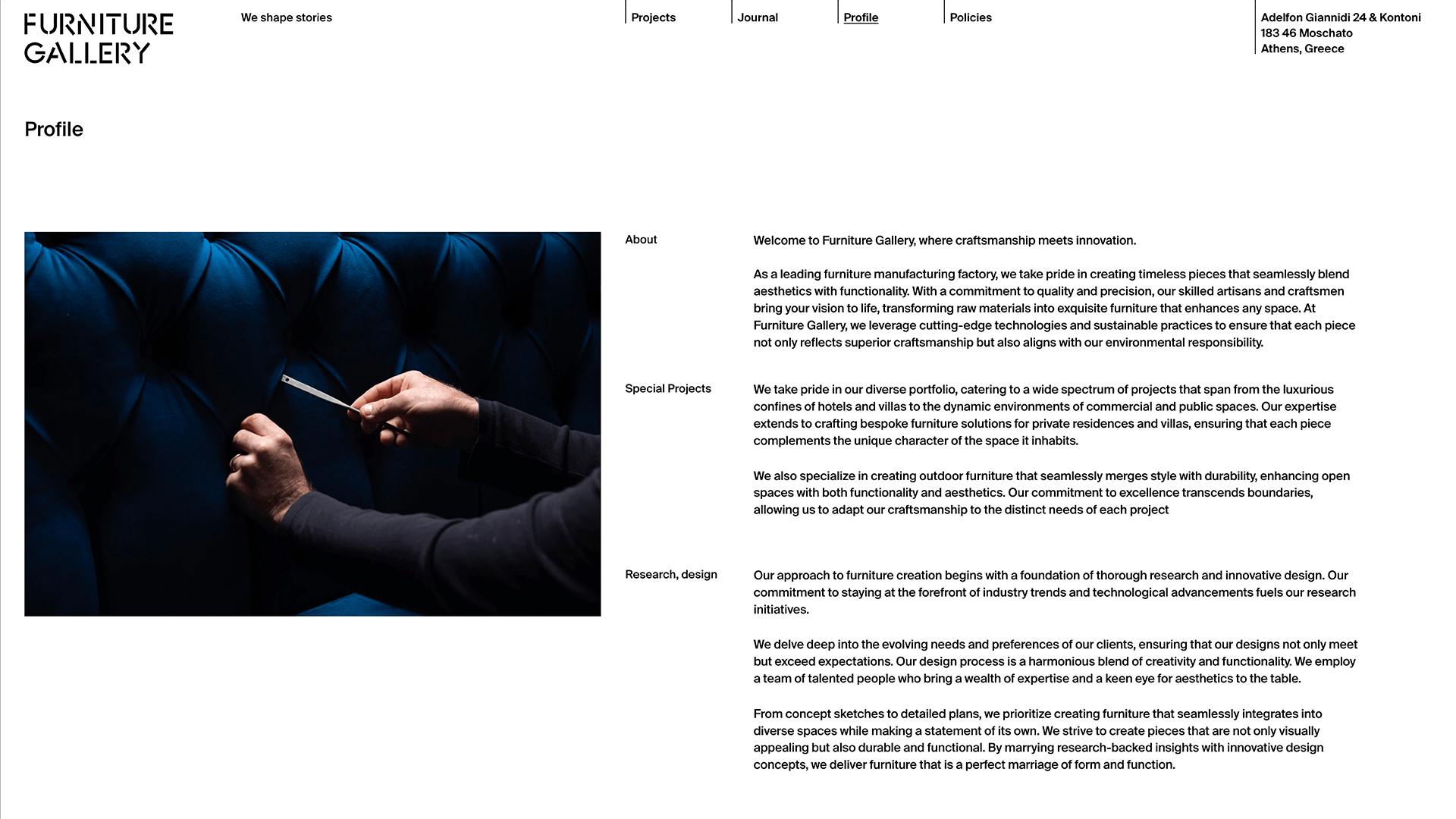Furniture Gallery must keep pace with trends and technology to stay constantly ahead of the curve. Crisp, clean framing obeys the maxim of “less but better” to portray a company in complete control.
